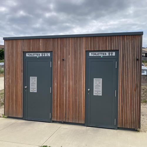 Les cabines auto-nettoyantes contiennent souvent de nombreux éléments en inox, en particulier dans les équipements PMR, les poignées, les cuvettes et les zones techniques.
